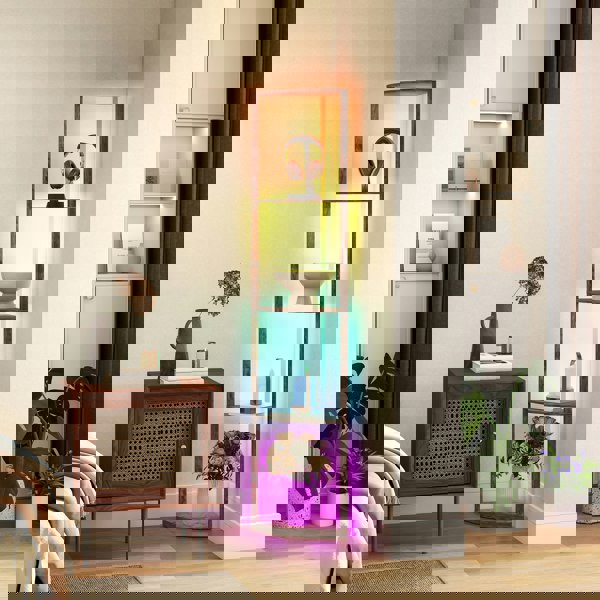 The HOMCOM floor lamp with shelves is designed to bring light and organisation to your living space in one modern piece. Combining RGB5050 LED lights with a five-tier shelf design, it offers a practical way to brighten a room while keeping everyday items neatly arranged.