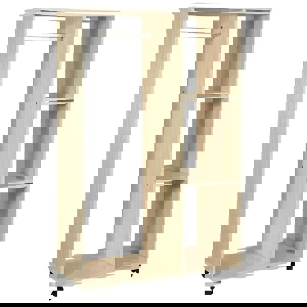 Designed for flexible storage, the HOMCOM rolling open wardrobe combines a hanging rail with open shelving in a clean maple wood-effect finish. Made from particle board with an aluminium alloy rail, it brings a practical, lightweight feel to bedrooms, cloakrooms, spare rooms and guest rooms.