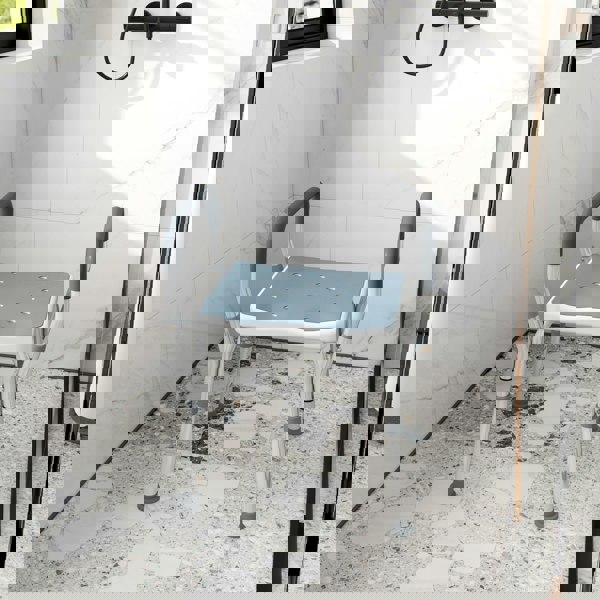 Sit safely in comfort with this HOMCOM adjustable shower seat. The height is adjustable between 57-69cm - set it to the position best for you. The aluminium frame is a strong core to support you fully, fitted with a comfortable EVA pad seat. Complete with non-slip feet for safety.