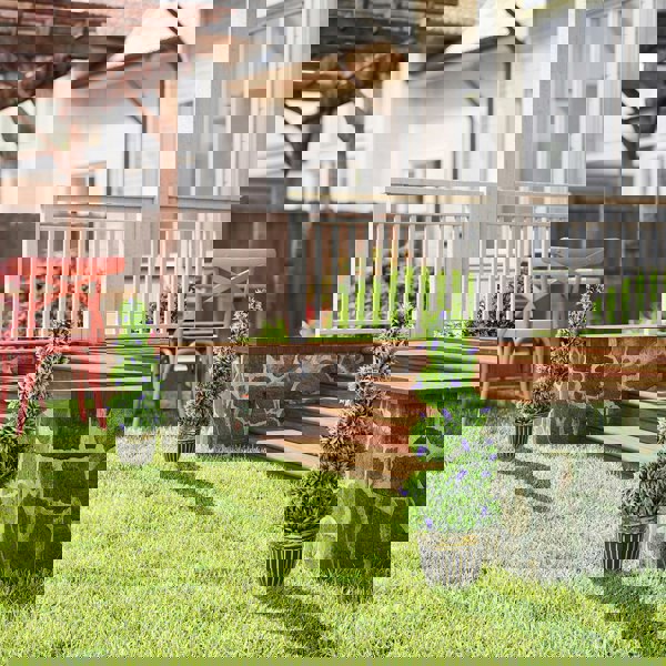 Transform your space with the HOMCOM decorative artificial plants, featuring a stunning spiral design with vibrant green leaves and blue lavender. These fake plants come in a chic golden tone and black pot, cemented for stability, and require no watering or sunlight. Suitable as both an indoor plant and outdoor artificial plants, they offer an effortless splash of colour and style.
