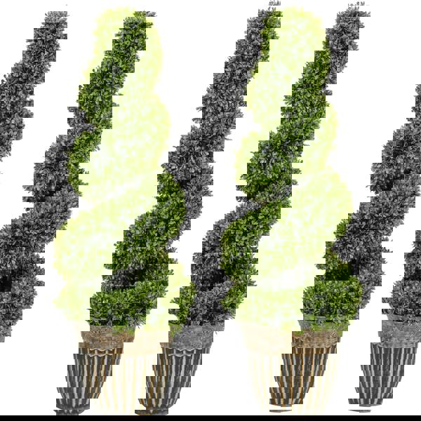 Green plastic plants, all year round with these two HOMCOM spiral boxwood trees. The faux plants will stay green for many years; no trimming or shaping required. Each plant has 1000 leaves - realistic colour and texture for a realistic look. They come with cement-filled pots to keep weighted.