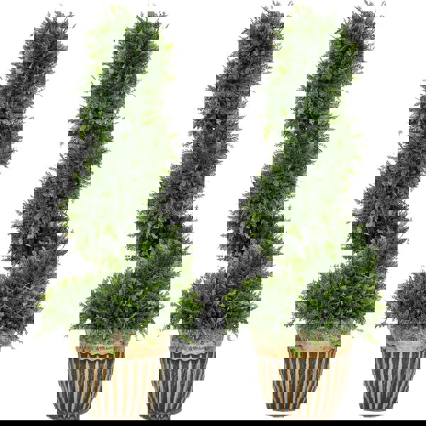 Green plastic plants, all year round with these two HOMCOM spiral boxwood trees. The faux plants will stay green for many years; no trimming or shaping required. Each plant has 650 leaves - realistic colour and texture for a realistic look. They come with cement-filled pots to keep weighted.