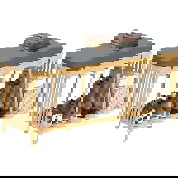 Say goodbye to messy entryways and wobbly seats! The HOMCOM shoe storage seat brings instant calm and order to your home. Crafted entirely from solid bamboo, it supports up to 220 kg for a secure and stable seat. The soft, cushioned top offers a comfortable spot to sit, while the built-in storage keeps shoes and essentials neatly tucked away, turning your daily routine into a moment of ease and comfort.