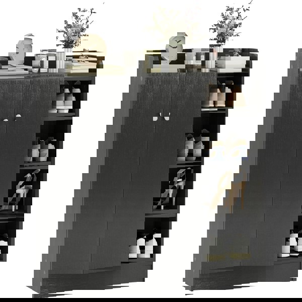 This HOMCOM shoe storage cabinet is designed to keep footwear organised and easy to access in hallways, entryways, or other indoor spaces. Combining open and closed storage, it provides a practical way to reduce clutter while keeping everyday pairs close to hand.