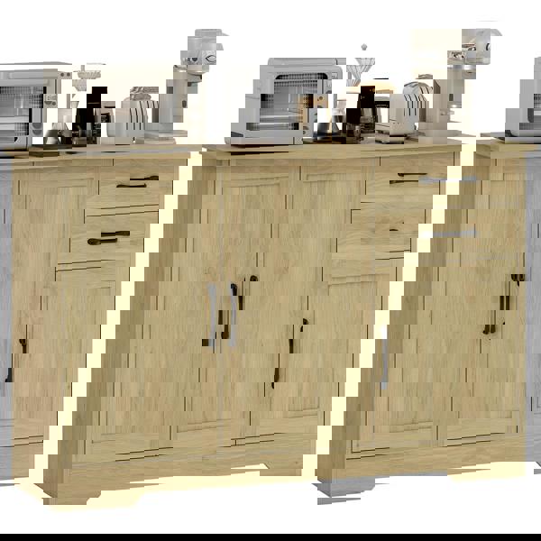 Designed to keep everyday essentials neatly organised, the HOMCOM sideboard brings modern storage to your living space in a natural wood finish. With a generous top surface and a combination of drawers and cabinets, it suits busy kitchens and dining areas as well as living rooms where you want clutter kept out of sight.