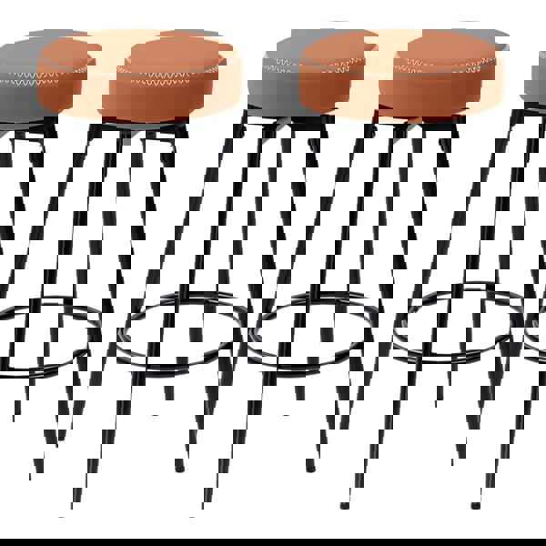 Style, with subtle contrast - look to this set of two HOMCOM bar stools. With faux leather upholstery for a sleek look - the white threads on the edges brings a touch of difference. The 8 cm thick foam cushion keeps you comfortable - ideal for extended times dining and more throughout the home. The powder coated metal frames mean strong, supportive cores - finished with adjustable feet for balance.