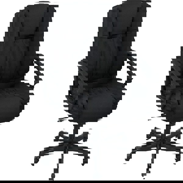 This HOMCOM office chair is a great addition to any home office. A comfy chair: filled with foam padding, with a high back, fixed armrests and adjustable height for support. Five 360° wheels allow this chair to be moved around easily, whenever, complete with a swivel seat which moves in motion with your body.