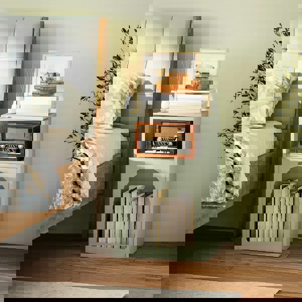 Discover the charming HOMCOM bedside table, where style meets functionality. Its unique arch design and soothing hue add a splash of colour to your space. Featuring two open compartments, this versatile piece doubles as a small bedside table or an end table, offering lots of storage while fitting snugly into narrow nooks. A delightful addition to any room!