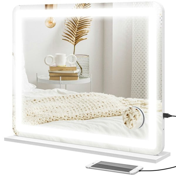 HOMCOM Vanity Mirror with Lights combines an LED-lit mirror with 10X magnification and touch control. The large mirror surface keeps your full face in view, while the built-in lighting offers three colour temperature options to suit different settings.