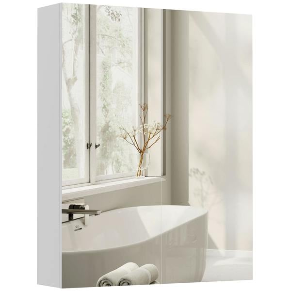 Designed to keep everyday essentials neatly organised, the HOMCOM wall-mounted bathroom mirror storage cabinet combines a clean white finish with a practical mirrored front. Ideal for bathrooms where floor space is limited, it offers a streamlined way to store toiletries while keeping a mirror close at hand for daily routines.