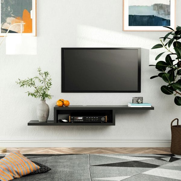 The HOMCOM wall mounted media console is designed to create a clean, floating look in your living room while keeping everyday essentials organised. Featuring a two-tier layout, it provides space for consoles, books and more, helping to clear floor clutter and keep your setup looking tidy.