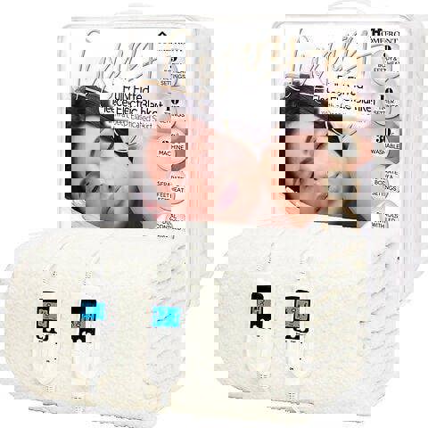 Individual Body & Feet Heat Technology is built into the controllers, and the blanket includes a built-in advanced overheat protection system with automatic safety shut off. It is machine washable; detach the controls and wash at 30°C. A 2-year guarantee is included.