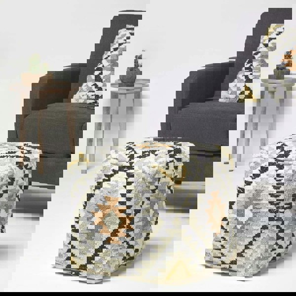 Featuring a traditional textured pattern that echoes Indian and Tribal influences, these striking and colourful pouffes are sure to make a bold statement in any home.