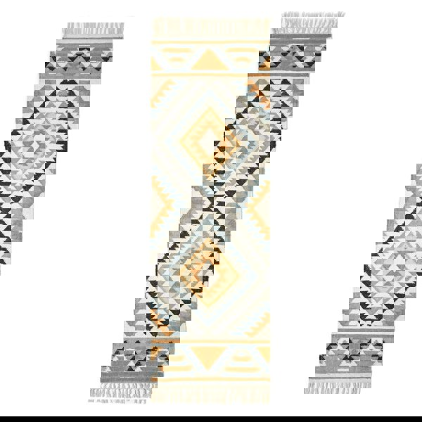 Add texture and warmth to your home with the HOMESCAPES Agra Rug. Featuring a contemporary geometric-inspired design in ochre gold, yellow, cream and silver grey, this vibrant rug complements hardwood furniture and modern interiors beautifully.