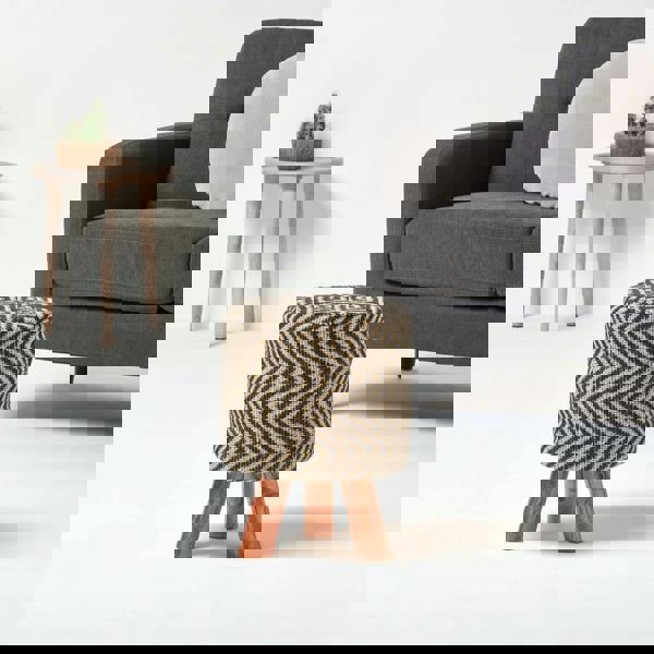 Add natural texture and modern character to your home with this tribal-inspired jute pouffe from HOMESCAPES. Featuring a striking black and off-white diamond pattern, this handcrafted footstool brings an on-trend ethnic look that suits both contemporary and bohemian interiors.