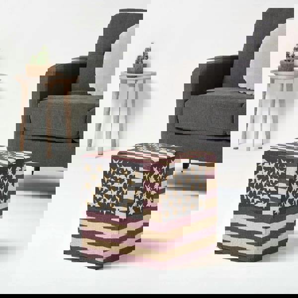 Designed to be both functional and eye-catching, this pouffe works perfectly as a footstool, occasional seat, or accent piece. Its lightweight design makes it easy to move around your living room, bedroom, or study.