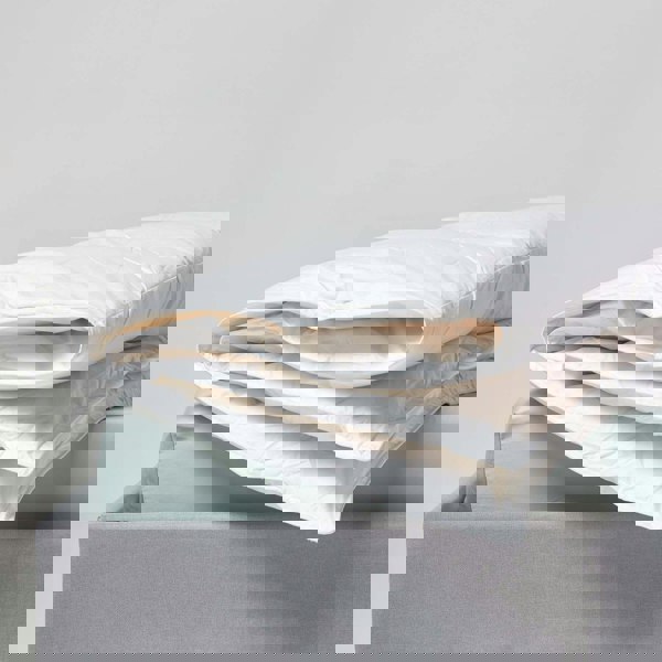 With a 9 Tog rating, this duvet is perfect for spring and autumn weather. It includes plastic fasteners to pair two Luxury White Duck Duvets together for a higher Tog rating. Available in four sizes: Single, Double, King, and Super King.