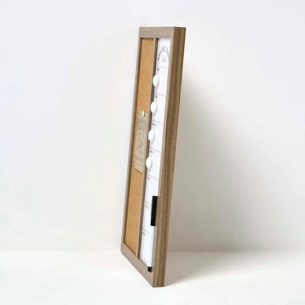 This combination noticeboard includes both a cork board and a whiteboard planner in one. Expertly crafted from 90% MDF, 5% PE, and 5% paper, it measures approximately H40 x W30 x D1. 5 cm—offering ample space for writing notes, menus, reminders, or messages. Suitable for use with pins and whiteboard markers, it’s easy to maintain—simply wipe clean with a dry cloth. Includes one whiteboard pen for instant use.