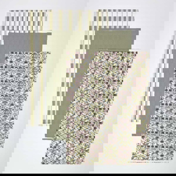 Enhance your kitchen with HOMESCAPES’ beautifully designed set of 3 premium cotton tea towels, featuring elegant green and pink motif patterns. Expertly crafted from 100% pure cotton, these kitchen towels offer exceptional absorbency, softness, and durability for everyday use.