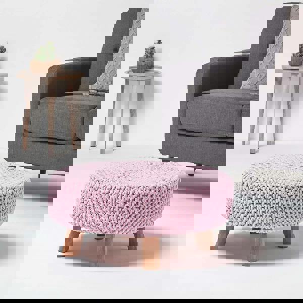 The large oval design makes this knitted footstool ideal for sharing, whether used as a footrest, occasional seat or stylish accent piece. Perfect for living rooms, bedrooms or reading corners, it combines practicality with relaxed, contemporary charm.