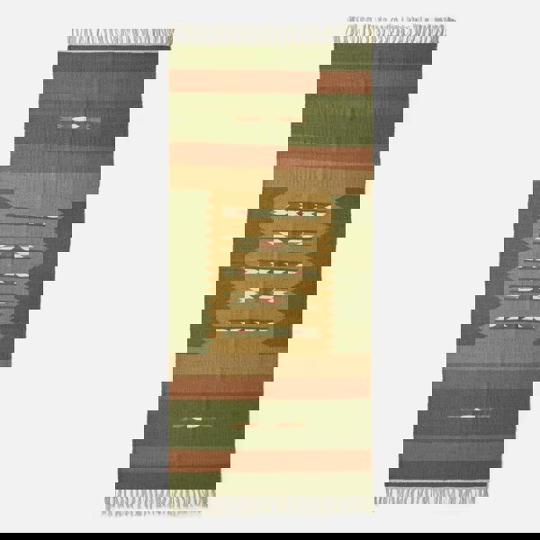 Traditional handwoven kilim rug from HOMESCAPES’ exclusive kilim collection. These durable, hardwearing rugs are woven from a 45% cotton and 55% jute blend, creating a sturdy tapestry-style rug ideal for everyday use.