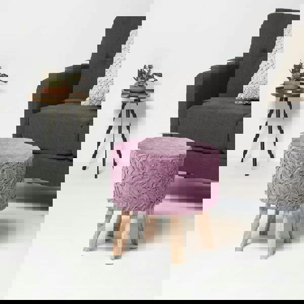 Raised on four sturdy wooden legs, this versatile pouffe offers a stable and comfortable surface. The padded flat top makes it ideal for use as a footstool, occasional seat, or even a compact coffee table.