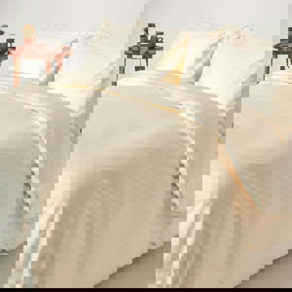 This duvet cover set is crafted from single ply (40s) super combed organic cotton, woven in a plain sateen weave. With 400 yarns woven into each square inch, it delivers the smoothness of 600 thread count twisted yarn fabrics, but with superior durability. Designed for those who prefer crisp, cool cotton with a silky finish, the fabric becomes even softer with every wash. Introduced in 2008, this organic collection remains one of HOMESCAPES’ most popular ranges, available in five timeless colours.