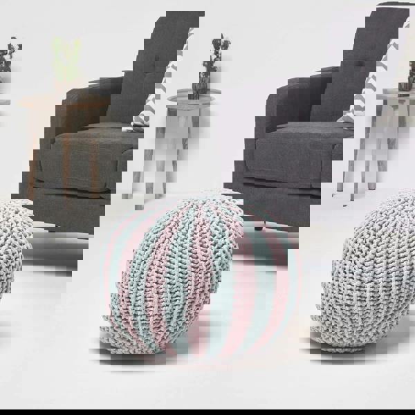 Each pouffe is generously filled with robust polystyrene beads, ensuring it remains sturdy and retains its shape during use. The durable knitted construction provides reliable support while maintaining a soft, homely appearance.
