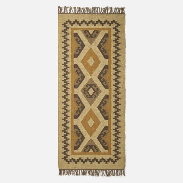 Traditional handwoven kilim rug from the HOMESCAPES exclusive kilim collection. These durable, hardwearing rugs are woven from a unique blend of jute and wool, making them ideal for heavy footfall areas throughout the home.