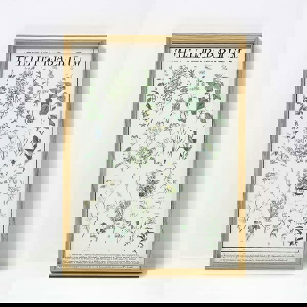 Bring a touch of sophisticated minimalism to your home with HOMESCAPES’ framed wall art collection. This set of 2 herbarium prints showcases delicate green herbs and wild plants set against a natural white background, creating a calming and timeless aesthetic. Each print is encased in a sleek wooden frame with a glass front, perfect for adding refined style to your living space.