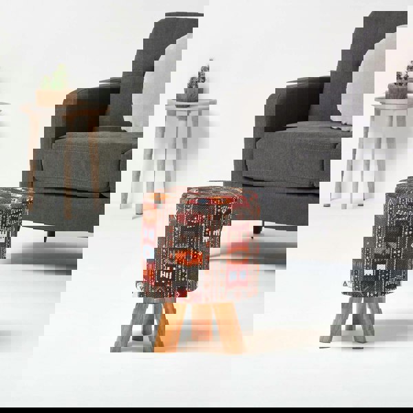 Add a touch of Middle Eastern style to your living space with HOMESCAPES traditional kilim design footstool collection. Available in two sizes, this stylish footstool comes in either a tall or flat circular design and is supported by three sturdy wooden legs.