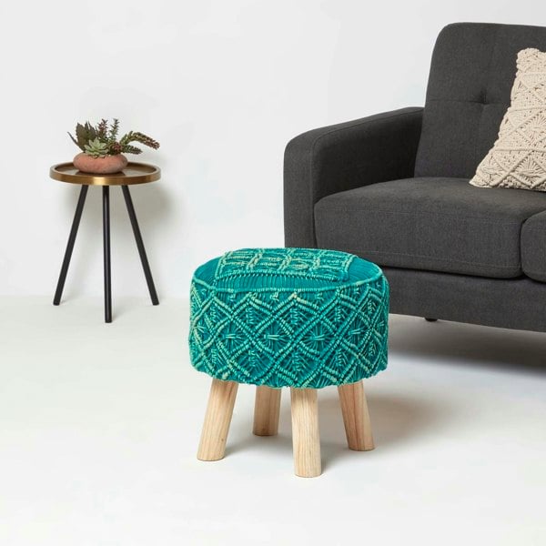 Boho Style Handwoven Cotton Footstool