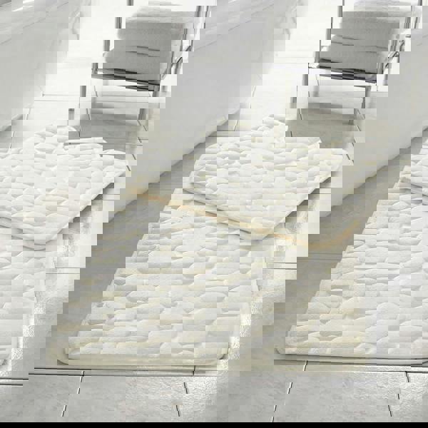 Enjoy the comfort of standing on the clouds with this 2 piece memory foam pebbles bath mat and toilet mat set. The thick and fluffy contact surface offers exceptional comfortable feeling. Perfect for bathroom, vanity, vacation home, master bathroom, kid's bathroom and guest suite. The pebble mats are constructed with strong and durable nonslip backing which helps to prevent shifting and skidding. To prevent from slipping, please make sure the surface under the mat is smooth, clean and dry. We have a variety of colours for you to select. Please choose one of your favourite colours to match the home decoration perfectly.