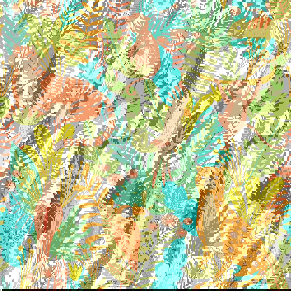 Transform your child’s room into a vibrant rainforest with Animal Kingdom, a wallpaper that brings imagination to life! Swing through the trees with cheeky monkeys, prowl alongside majestic tigers, and soar high with colourful parrots in a tropical paradise full of fun and wonder