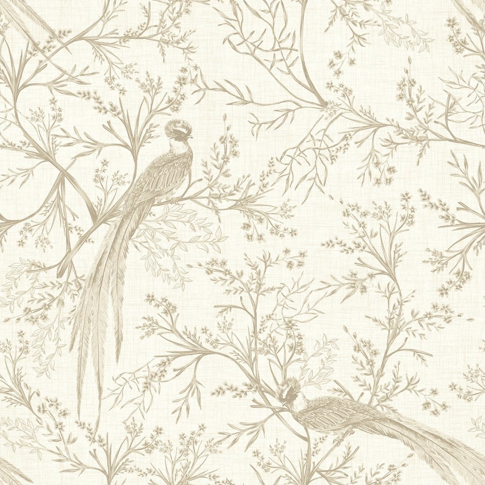 Hoopla Walls Bird Toile - Stone 10m Wallpaper