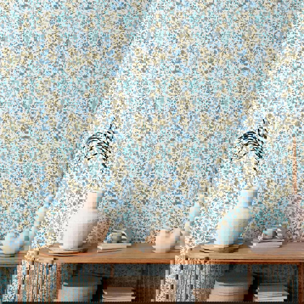 Hoopla Walls Botanical Leaves - Denim Mix 10m Wallpaper