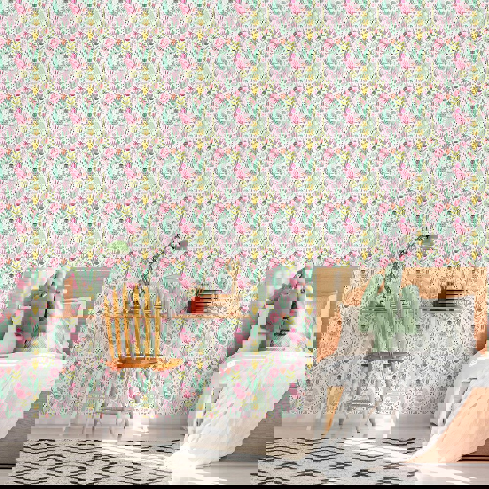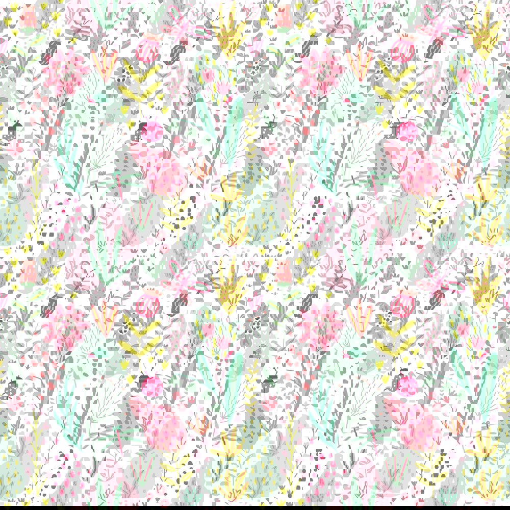 Buzzing with colour and life, beautiful butterflies and curious little ladybirds make themselves at home amongst pretty petals, budding blooms and dotty textural markings. Doodled dragon flies dance across the design, in and around the springing stems and flowers of the Ladybird Garden. Grab your magnifying glass and take a wander through this haven just made for little explorers.