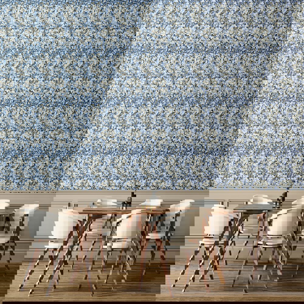 Hoopla Walls Chrysanthemum  - Indigo Blue 10m Wallpaper