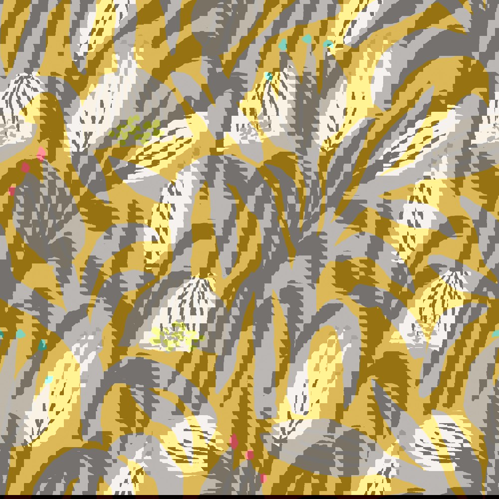 Abstract arching leaves and chunky flower heads combine with pops of colour to create a naïve and graphic interpretation of nature. Its joyful design is perfect to create a modem space in any interior.