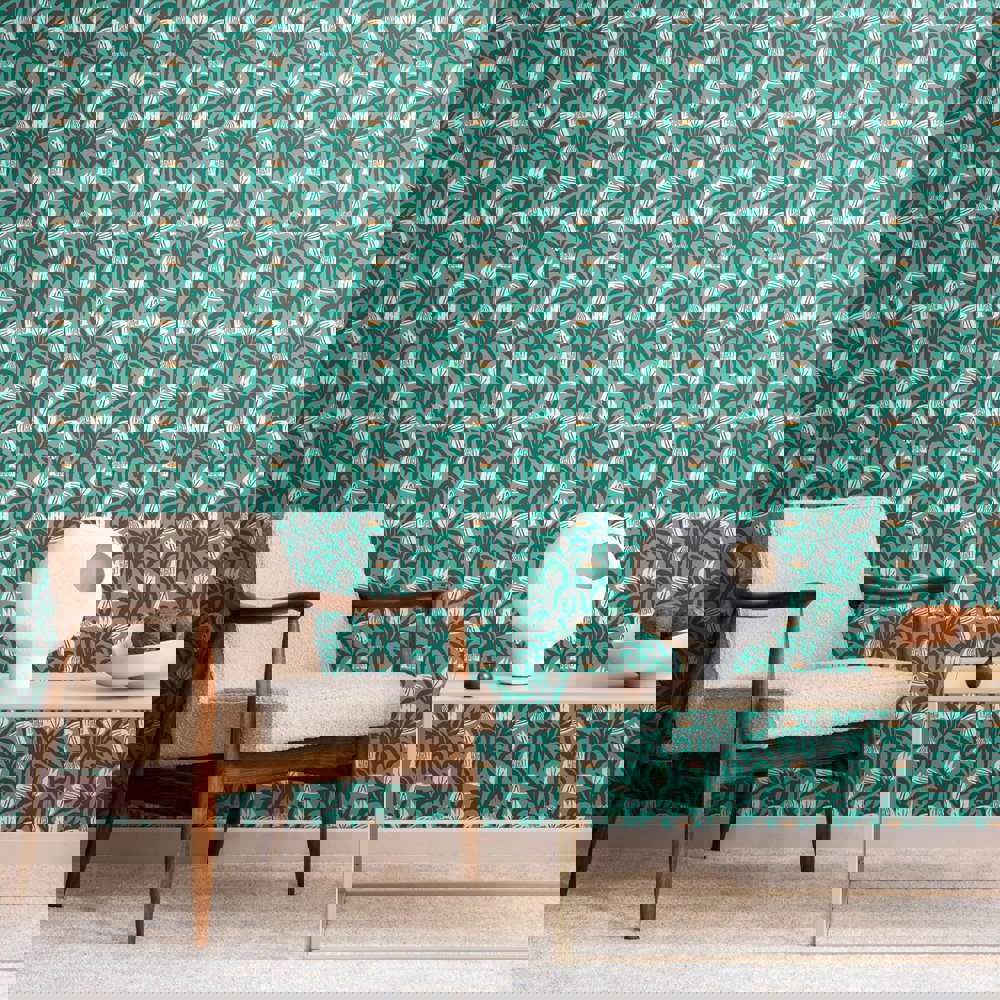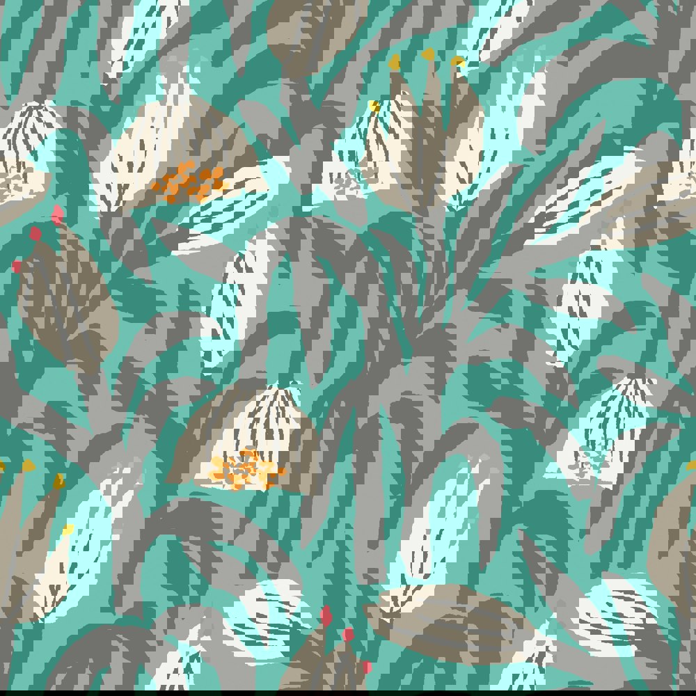 Abstract arching leaves and chunky flower heads combine with pops of colour to create a naïve and graphic interpretation of nature. Its joyful design is perfect to create a modem space in any interior.