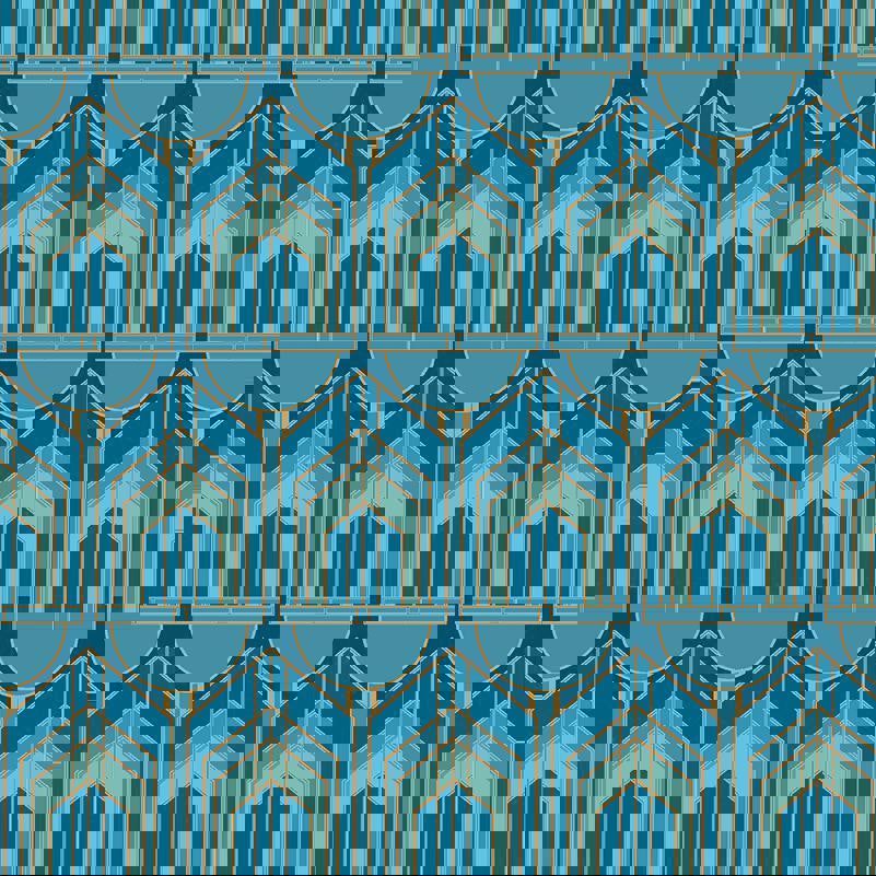 Tonal colours link together to create contrasting formations. Influenced by the 1920’s the repeating angular arches and curved domes in this deco inspired design epitomise modern-day opulence.