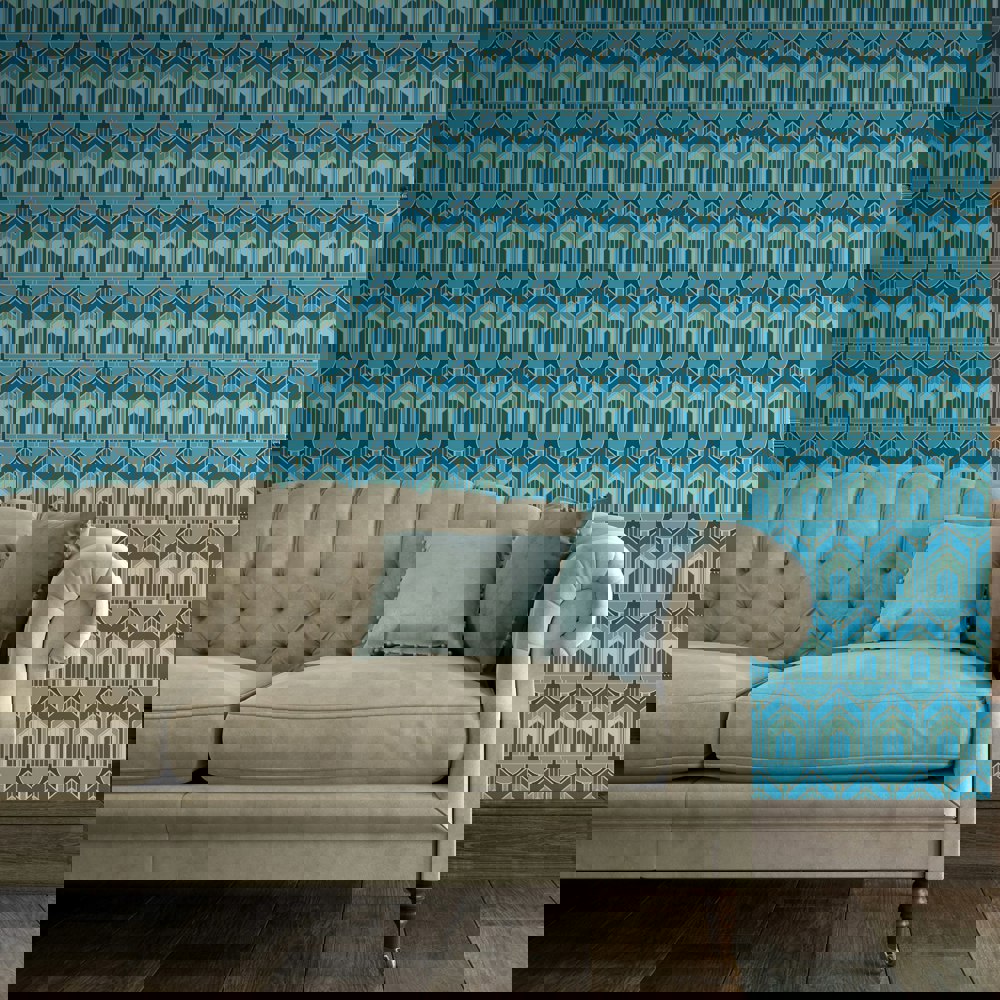 Hoopla Walls Deco Arch  - Teal Blue 10m Wallpaper