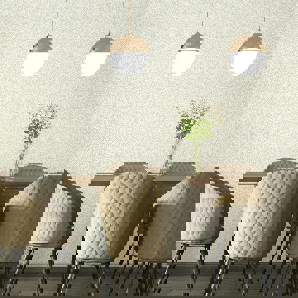 Inspired by decorative motifs from the 1920s, this versatile wallpaper is perfect for any interior space. Geometric crescents repeat across the wall, creating a modern deco vibe perfect for any room.