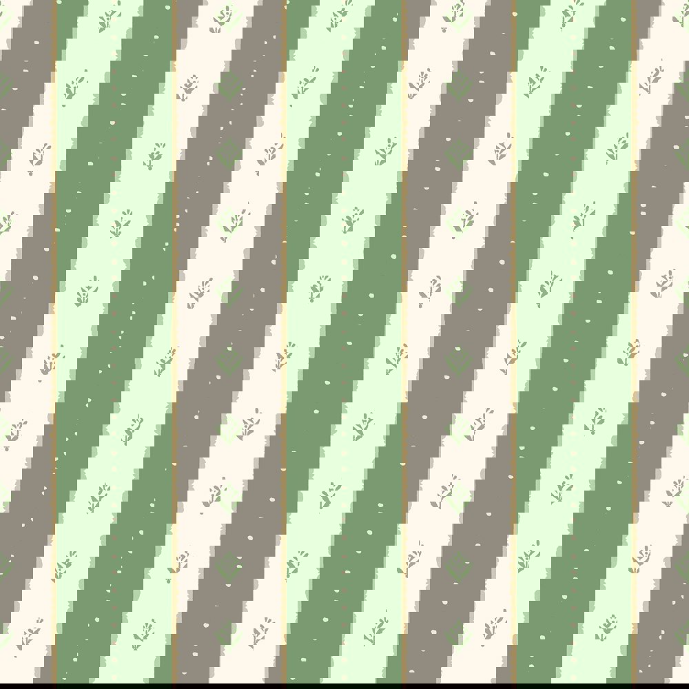 This design reimagines the traditional stripe with a crafted, contemporary edge. Broad vertical bands are softened by painterly texture, while scalloped edges introduce a subtle decorative contour. A quiet interplay of detail - fine dots and charming leaf motifs - adds rhythm and elegance.