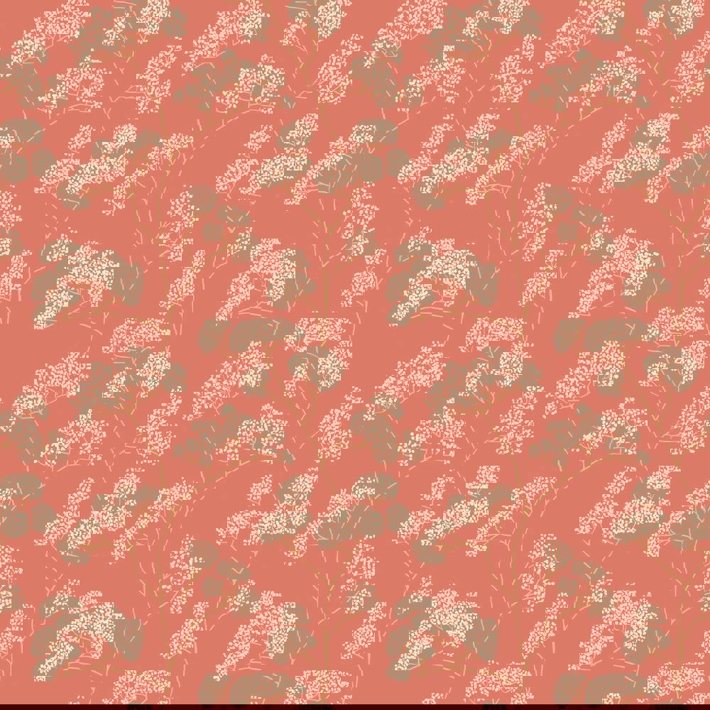 This elderflower-inspired pattern blends fine floral detail with a rhythmic stem motif that drifts seamlessly across the wall for a clean, contemporary look. Soft blooms hover over structured lines, creating a balance of organic lightness and geometric order, perfect for interiors that embrace natural simplicity.