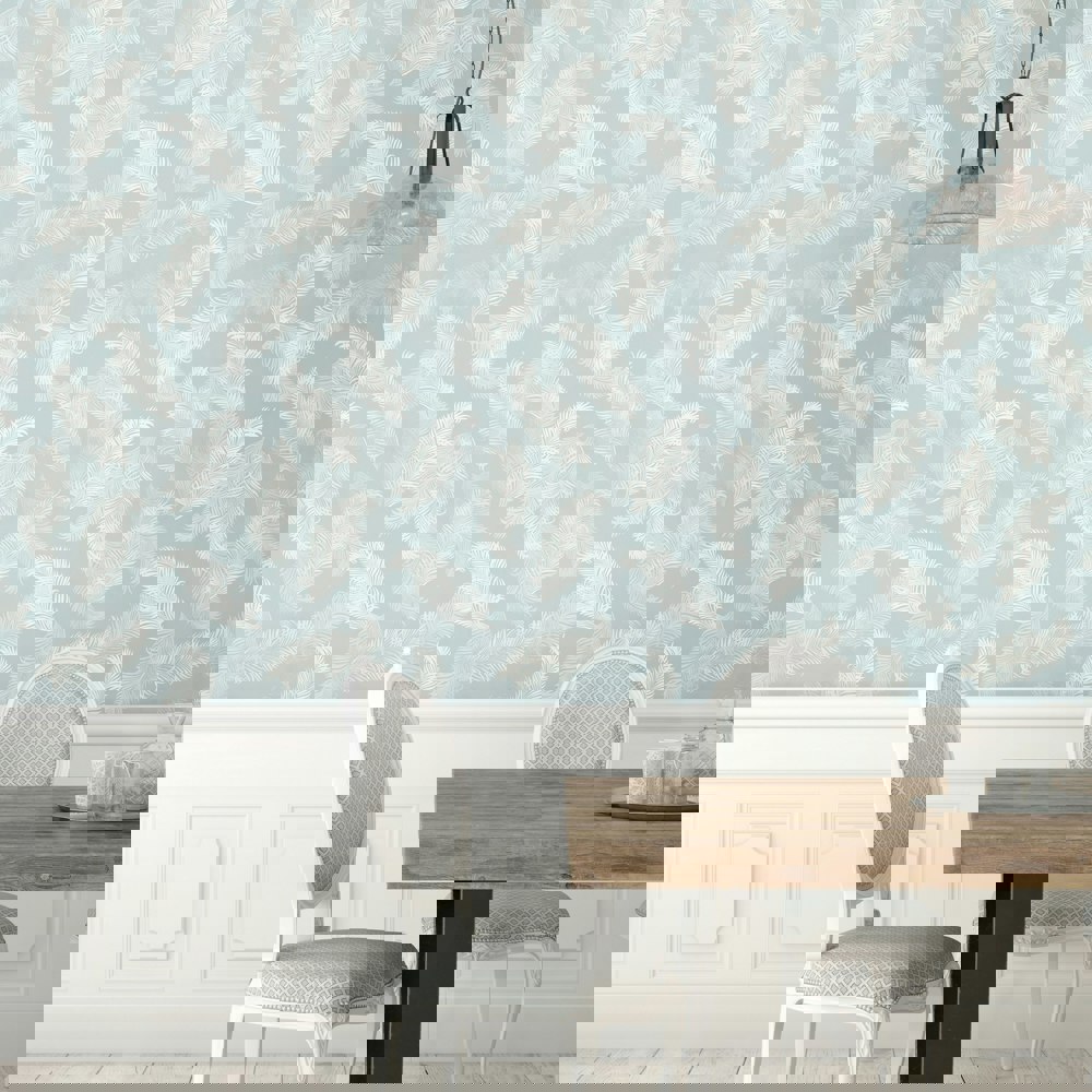 Hoopla Walls Feathers - Pale Blue 10m Wallpaper