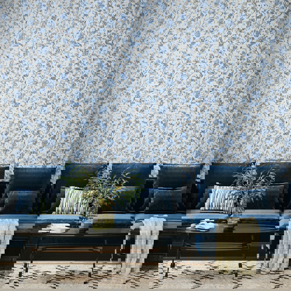 Hoopla Walls Floral Toile - Royal Blue 10m Wallpaper