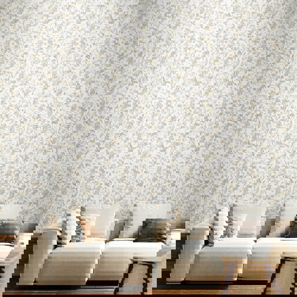 Flora Toile evokes the timeless charm of classic botanical illustrations, where finely sketched blooms, leaves, and branches unfold across the design with delicate detail and texture. Reminiscent of storybook scenes - gentle, nostalgic British countryside imagery - it balances intricate artistry with an airy simplicity.