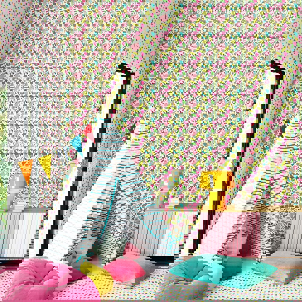 Let little rooms bloom with charm and character with Folk Floral—a fresh, playful take on traditional design. This pretty wallpaper features stylised blooms, crisp shapes, and delicate stitch-like details that echo the warmth of handmade embroidery. With its clean lines and soft, cheerful palette, Folk Floral brings a cosy, creative feel to nurseries, bedrooms, and play spaces.