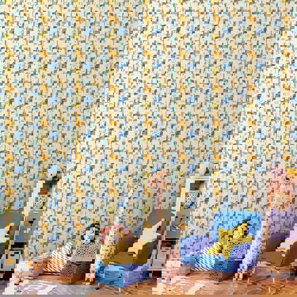 Give your walls a wild makeover with Giraffe Friends – a funky, abstract design where cool giraffes playfully mingle with soft clouds and scattered dots. With bold, geometric giraffe shapes, this design adds a fun, light-hearted vibe to bedrooms, nurseries or playrooms.
